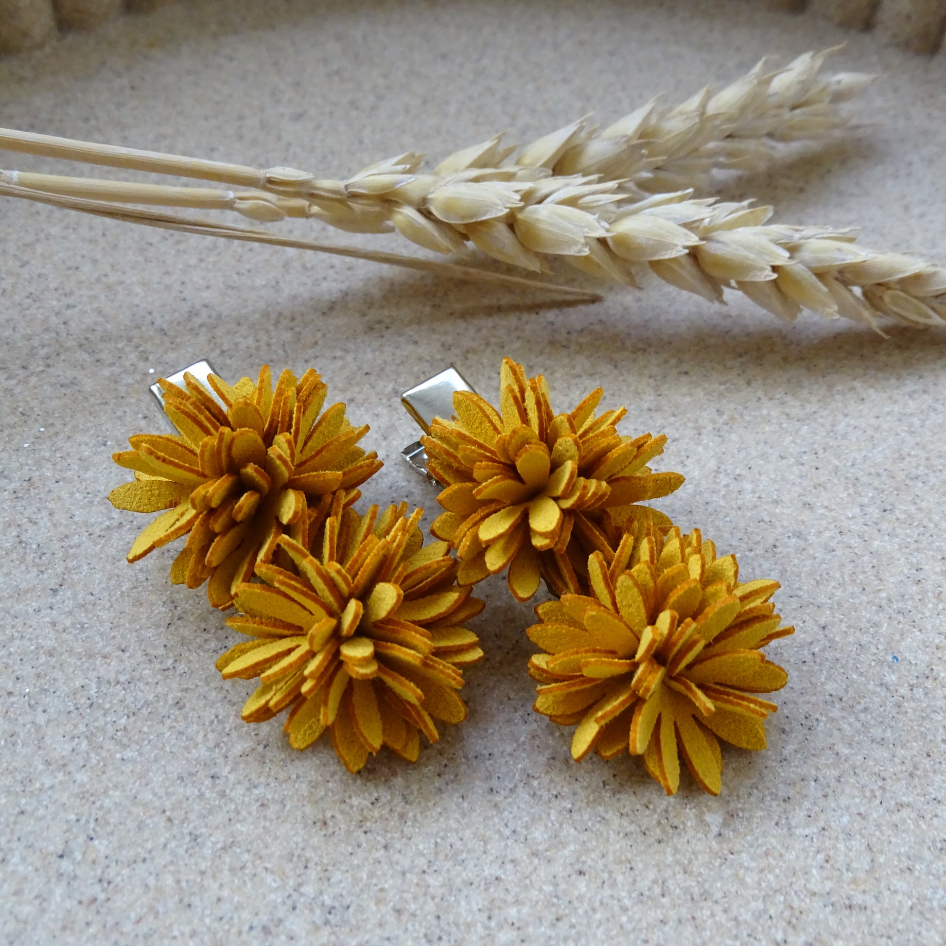 De alligatorspeld van 4 cm heeft kleine tandjes, waardoor hij goed blijft zitten — ook in voller haar of een staart. De bloem zorgt voor een zachte, natuurlijke uitstraling met een subtiele najaarstint, maar is tegelijkertijd tijdloos genoeg om het hele jaar door te dragen.