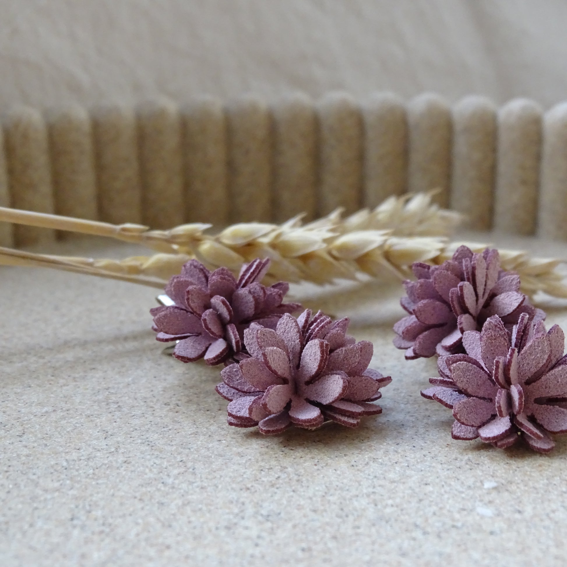 De alligatorspeld van 4 cm heeft kleine tandjes, waardoor hij goed blijft zitten — ook in voller haar of een staart. De bloem zorgt voor een zachte, natuurlijke uitstraling met een subtiele najaarstint, maar is tegelijkertijd tijdloos genoeg om het hele jaar door te dragen.