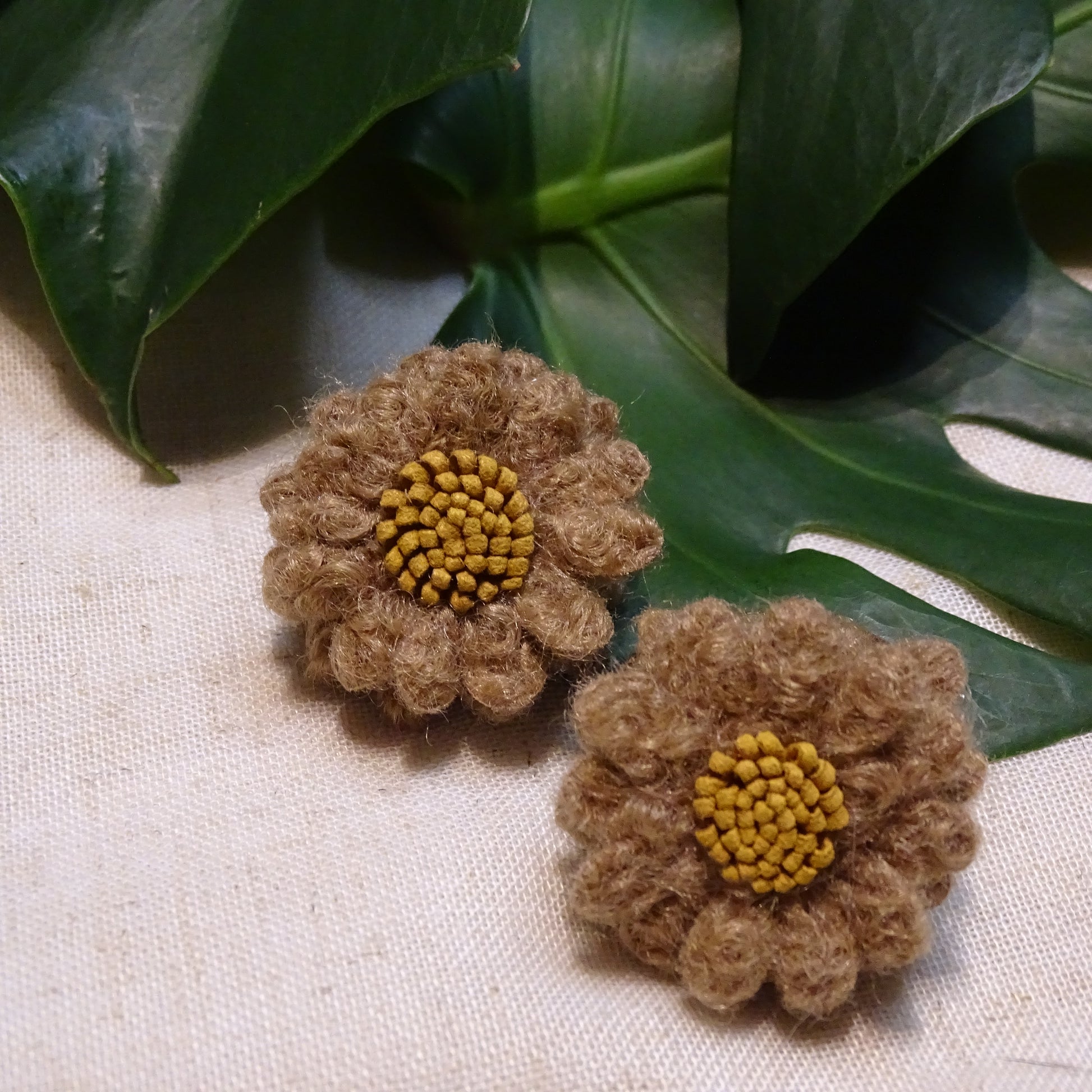Elastiekjes met bruïne wollen bloemen – set van 2