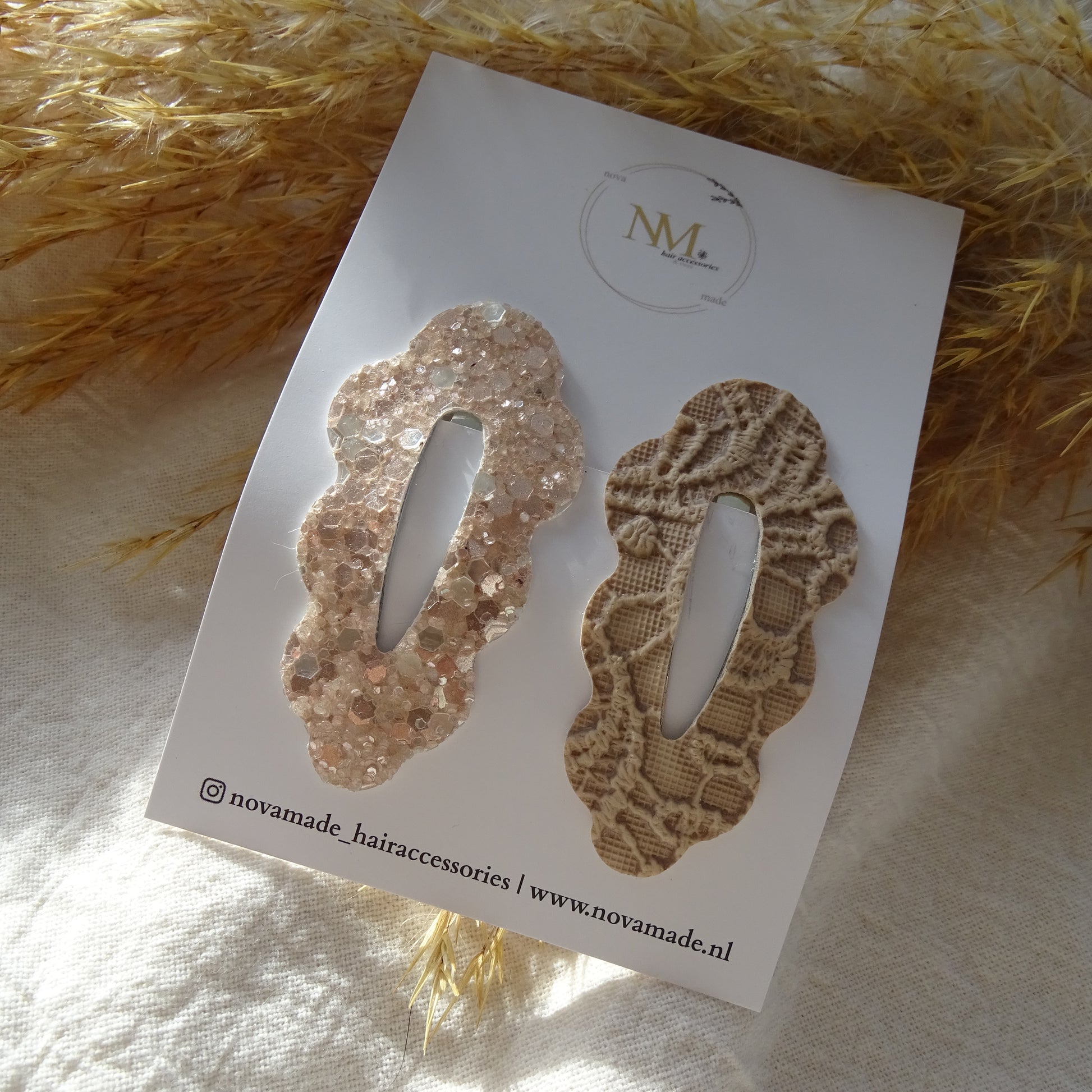 Voeg een vleugje zoetigheid toe aan je kapsel met de Caramel Swirl speldjes! Dit setje van 2 stevige klikklak haarspeldjes van 5 cm is ideaal om losse plukjes haar netjes vast te maken. De speldjes hebben een prachtige combinatie van licht crème en warm bruin.